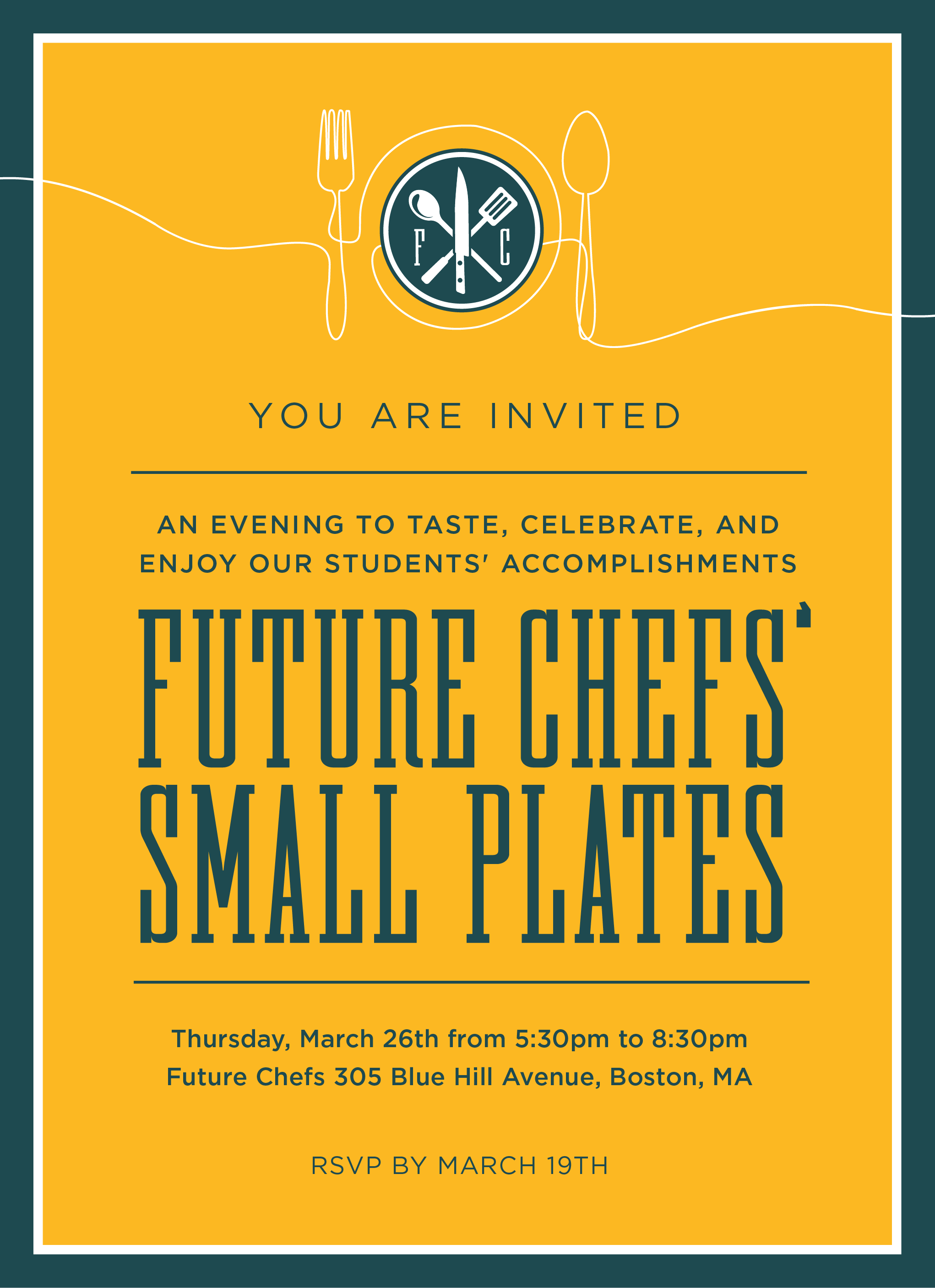 Join us Thursday, March 26, for Future Chefs’ annual Small Plates dinner! Our young chefs will showcase their skills, presenting dishes inspired by the flavors and techniques of the food that excites, comforts, and influences them. Tasting tables will feature a unique menu imagined, recipe-tested, and prepared by our students. Come with an appetite for delicious food AND learning from our young people about their creative process and inspiration behind each dish.
